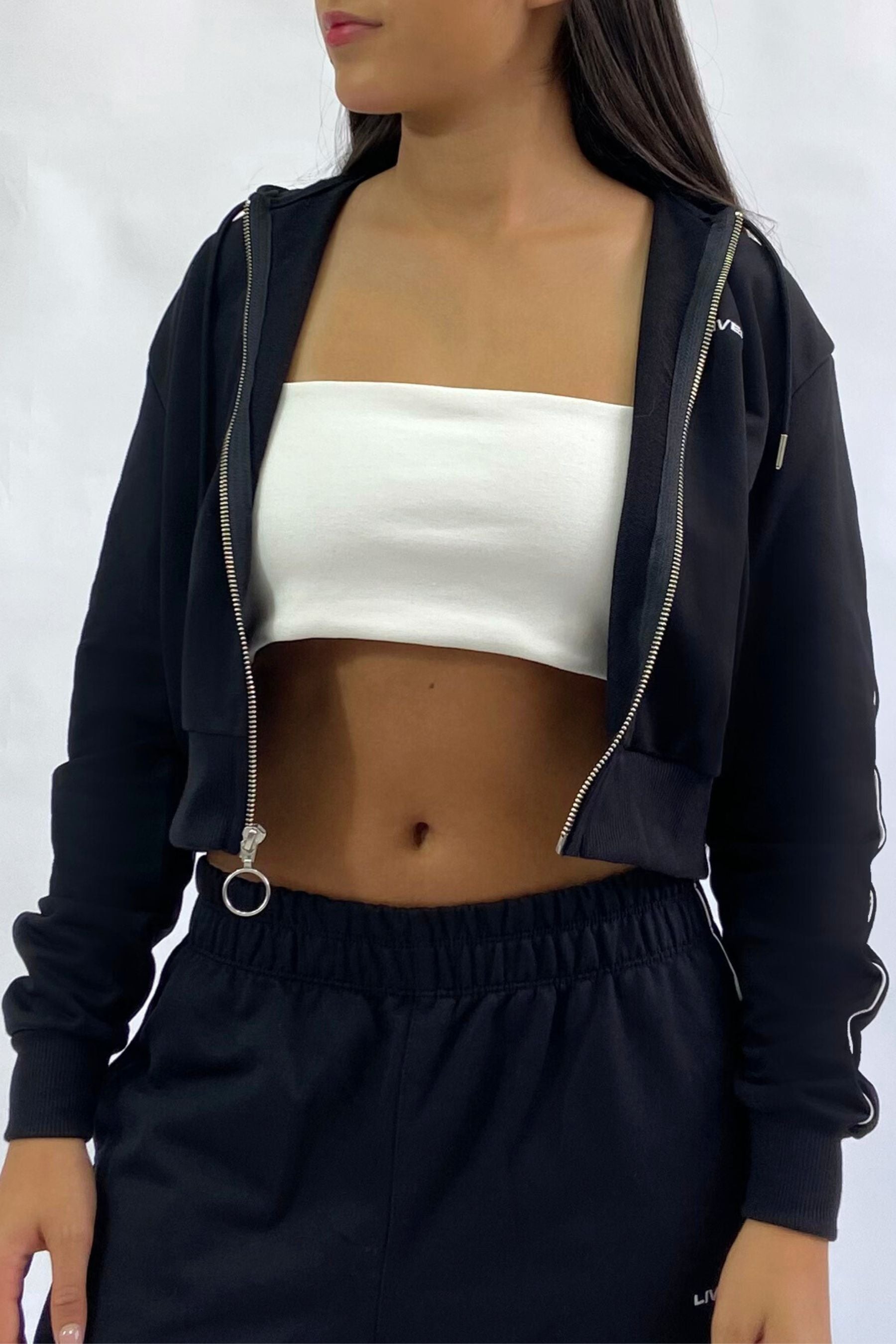 Un básico urbano con toda la onda. Este buso corto oversize con cierre en tono negro es perfecto para looks relajados y con actitud. Su silueta amplia y cómoda lo convierte en la prenda ideal para combinar con jeans, joggers o faldas y lograr un estilo effortless.