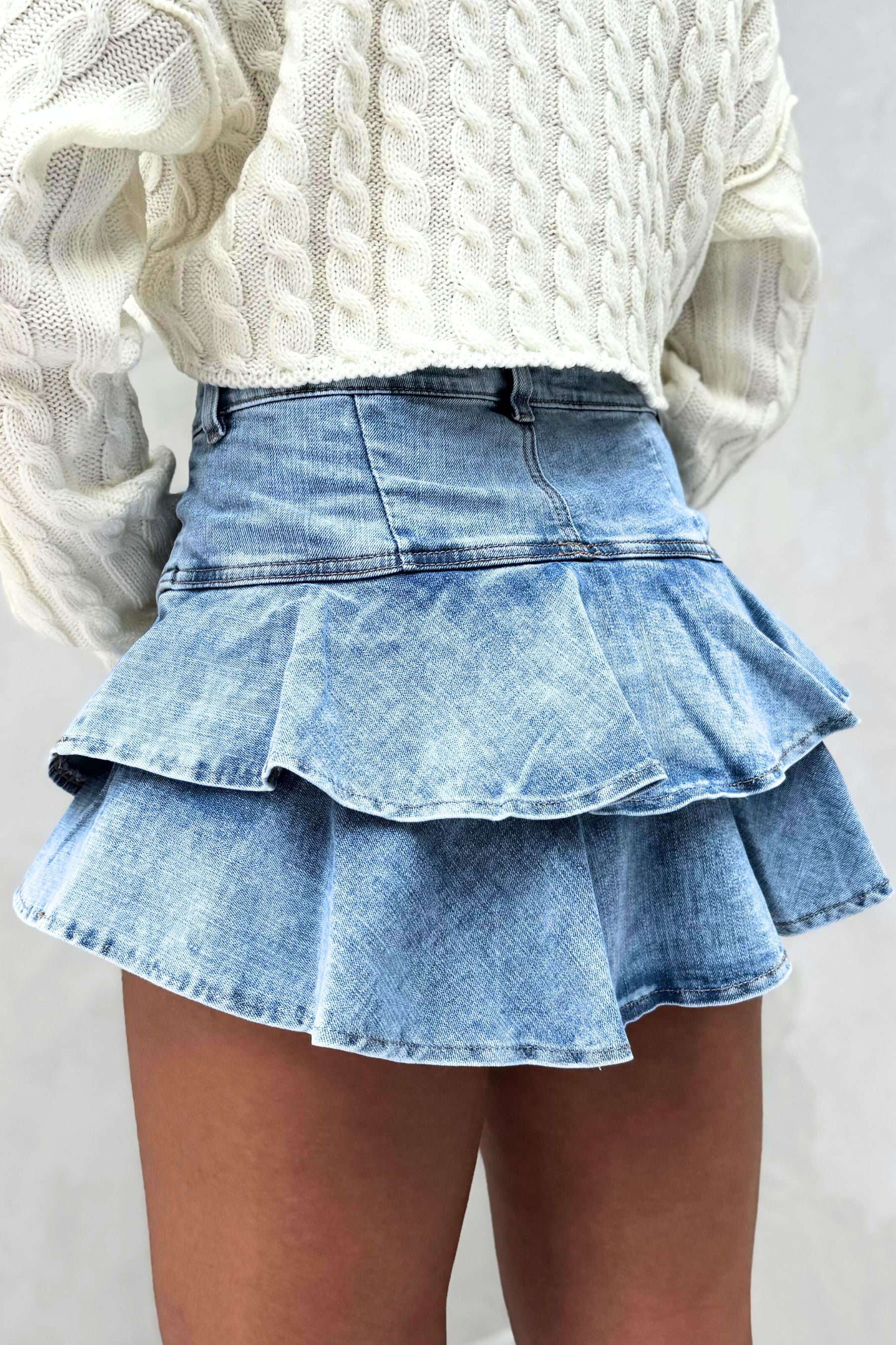 ¡Dale un toque de frescura a tu outfit! Esta falda de boleros en tono azul claro es ideal para quienes buscan un look lleno de movimiento y estilo. Su diseño delicado y juvenil te hará destacar en cualquier ocasión. Combínala con tops ligeros y accesorios sutiles para un outfit de ensueño.
