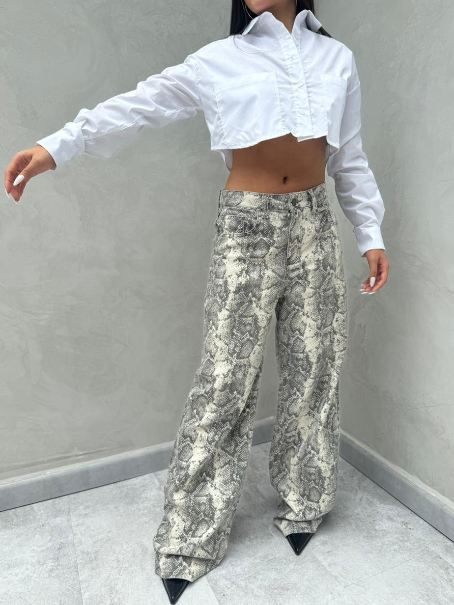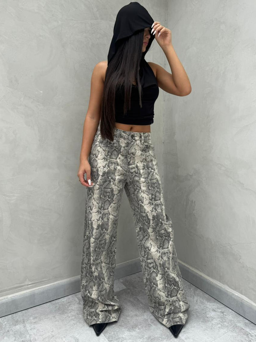 Un pantalón con textura inspirada en la piel de serpiente que aporta un toque audaz y sofisticado a tu look. Su corte recto y bota estilizan la figura, brindando comodidad y estilo en cada paso. Ideal para quienes buscan una prenda que combine tendencia y versatilidad con un diseño único.